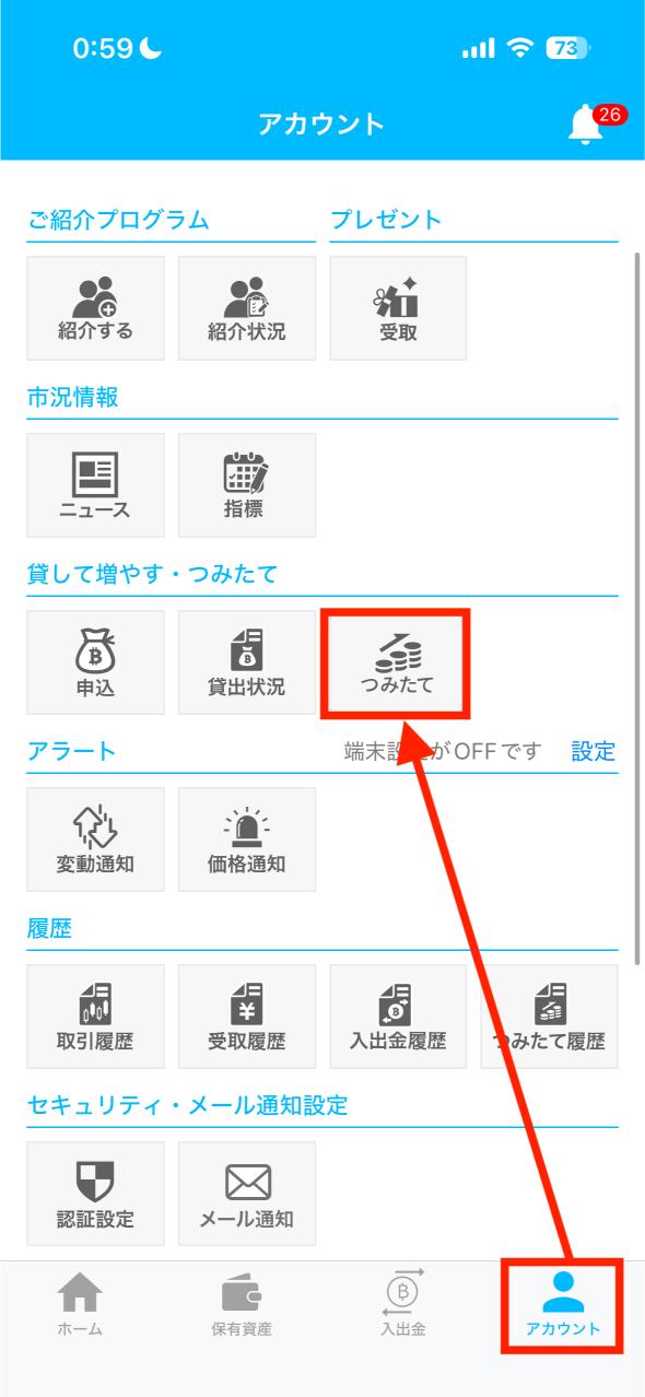 - ②:ビットコイン積立設定
