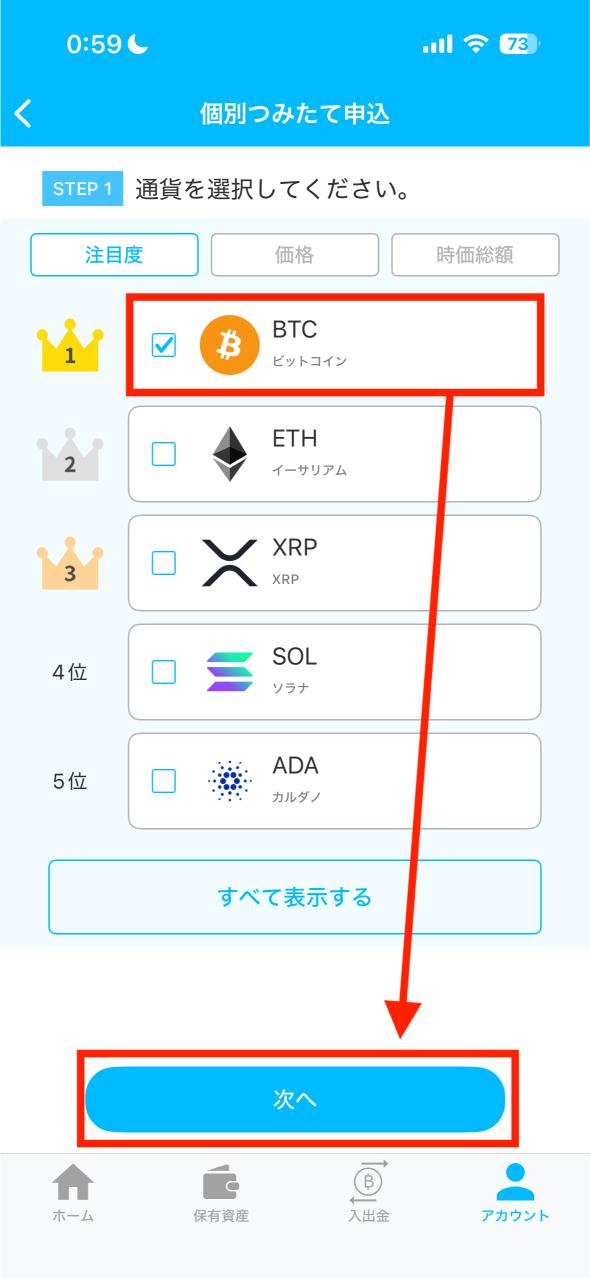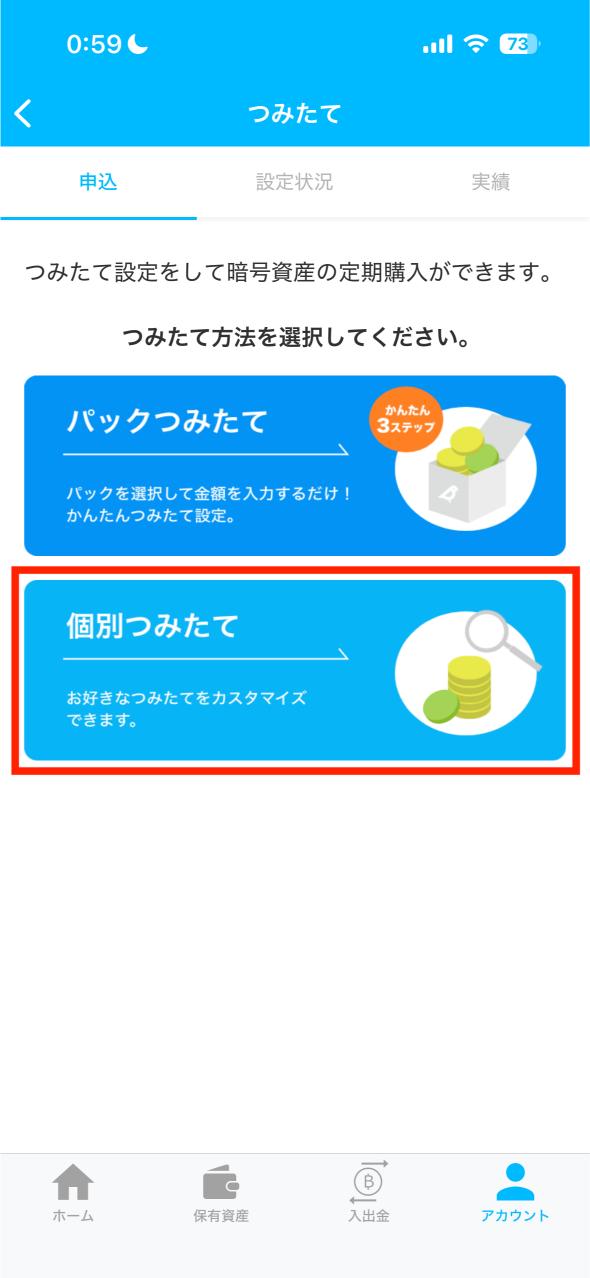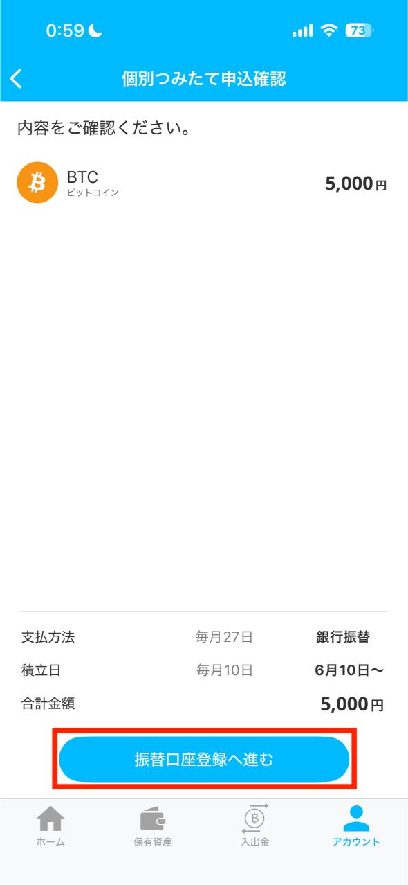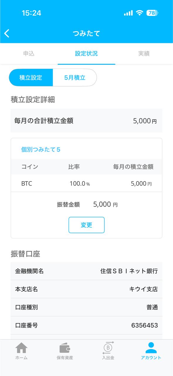 ②:ビットコイン積立設定